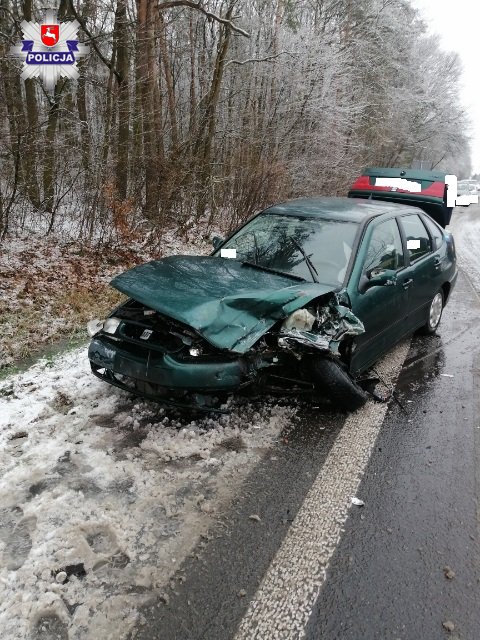 Dzisiaj w godzinach porannych w Siedliskach doszło do groźnie wyglądającego zdarzenia drogowego z udziałem czterech samochodów osobowych. Jak wynika ze wstępnych ustaleń policjantów, 46-letni kierujący samochodem marki Seat, jadąc w kierunku Lubartowa wyprzedzał ciąg samochodów. Kierowca nie zdążył wrócić na swój pas ruchu i zderzył się czołowo z jadącym od Lubartowa audi. W bok audi uderzył jadący za nim opel meriva i w tym samym czasie jadący za seatem w kierunku Lubartowa samochód marki Skoda uderzył w seata. Jedna osoba została przewieziona do szpitala w celu wykonania badań lekarskich. Wszyscy kierujący zostali przebadani na miejscu na stan trzeźwości - trzeźwi.