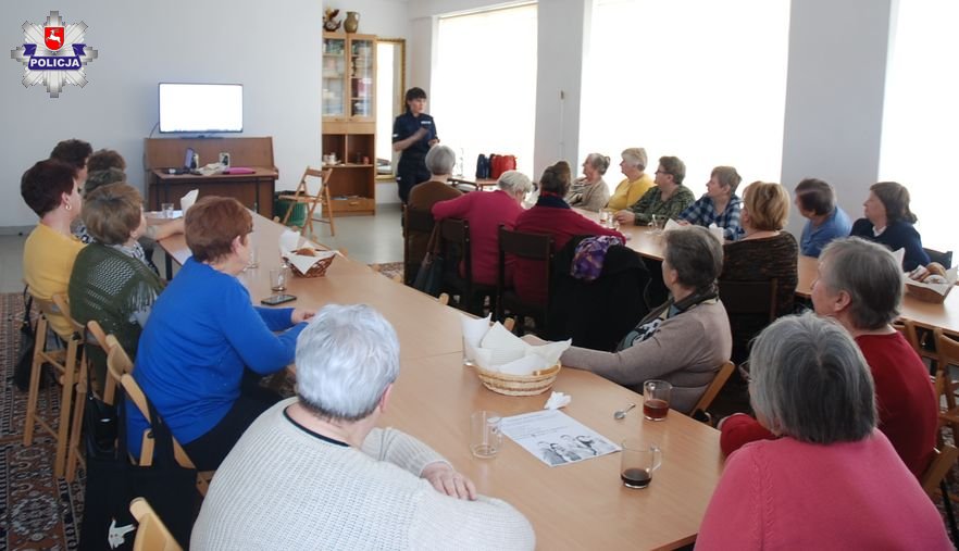 Funkcjonariusze omówili schemat działania przestępców i przestrzegli jak można ustrzec się przed ewentualnymi oszustwami. Omówione zostały również pojawiające się w ostatnim czasie oszustwa na tzw. ,,blika” i kody do głosowania. Rozmowa dotyczyła również oszustw telefonicznych i internetowych, tzw. w sieci. Uczestnicy spotkania mieli możliwość wymiany wzajemnych spostrzeżeń