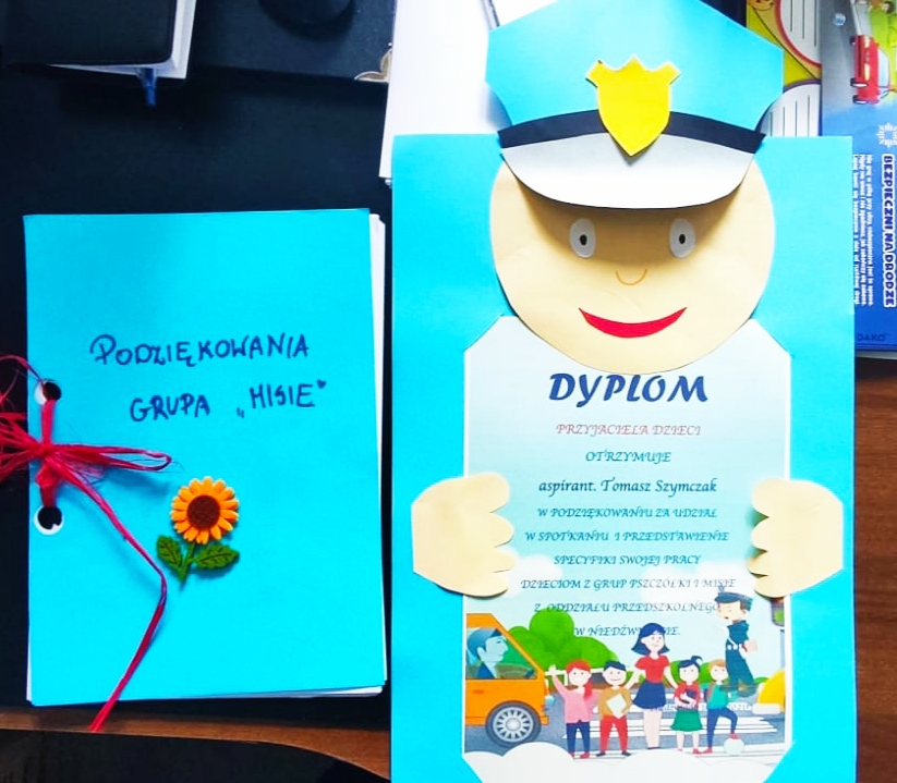 Z wizytą do Przedszkola Gminnego w Niedźwiadzie wybrał się wczoraj dzielnicowy -młodszy aspirant Tomasz Szymczak. Tematem głównym rozmowy z dziećmi było bezpieczeństwo. Policjant rozmawiał z przedszkolakami na temat bezpieczeństwa w domu, w szkole, na placu zabaw i w innych miejscach. Opowiadał dzieciom jak powinny zachowywać się w kontaktach z osobami obcymi, w kontakcie ze zwierzętami. Poruszone zostały też kwestie bezpieczeństwa w ruchu drogowym- bezpieczne przechodzenie przez jezdnię czy wzywanie pomocy. Na koniec funkcjonariusz pokazał dzieciom radiowóz i elementy wyposażenia policjanta. Przedszkolaki z zainteresowaniem słuchały i zadawały pytania.