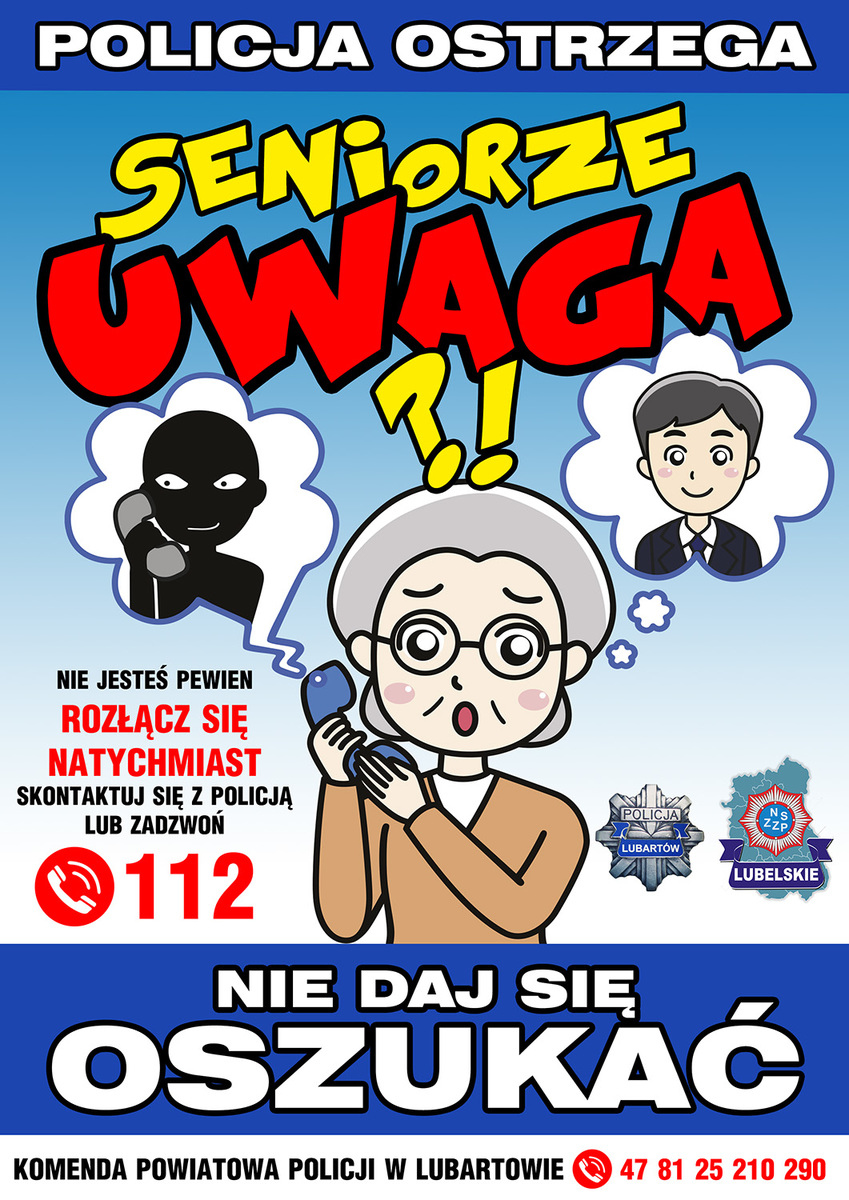 Policjanci z Lubartowa w ramach akcji ,,Seniorze, nie daj się oszukać” spotkali się dzisiaj z seniorami w miejscowości Serniki. Tematem przewodnim spotkania były oszusta -,,na policjanta, wnuczka czy pracownika spółdzielni".