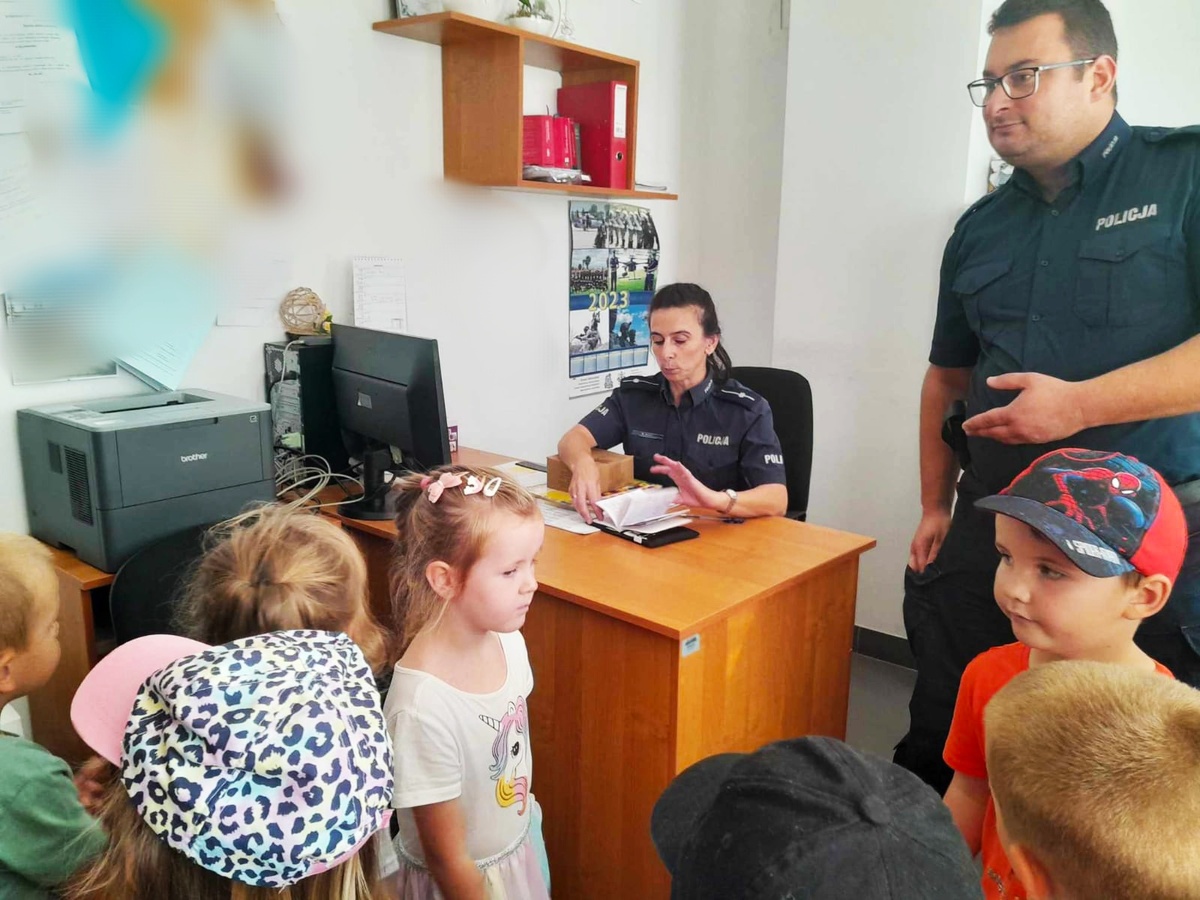 W ubiegłym tygodniu maluchy z Przedszkola w Kocku odwiedziły policjantów w kockim komisariacie. Najmłodsi mieli okazję przyjrzeć się pracy funkcjonariuszy. Spacer rozpoczął się od zwiedzenia sali odpraw i dyżurki. Następnie dzielnicowi rozmawiali z dziećmi na temat bezpieczeństwa w domu, w szkole i na drodze. Przypominali jak prawidłowo poruszać się po drodze, jak bezpiecznie przechodzić przez przejście dla pieszych i korzystać z odblasków. Policjanci opowiadali dzieciom o pracy policjanta w poszczególnych wydziałach i stanowiskach. Maluchy dowiedziały się, czym zajmuje się dzielnicowy, dyżurny czy policjant wydziału kryminalnego.