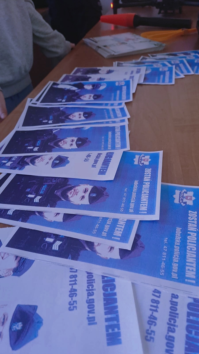 Młodzież dowiedziała się jakie warunki trzeba spełnić, żeby zostać policjantem i na czym polegają kolejne etapy rekrutacji. Funkcjonariusze przygotowali również materiały informacyjne w postaci ulotek, dotyczące rekrutacji.
