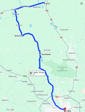 Trasa Kock-Lublin (droga wojewódzka nr 809): Kock-Przytoczno-Jeziorzany-Michów- Samoklęski-Lublin