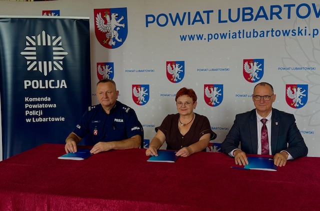 Komendant Powiatowy Policji w Lubartowie młodszy inspektor Tomasz Dejer, Starosta Lubartowski Pan Jan Sławecki oraz Dyrektor Zespołu Szkół w Kocku Pani Ewa Guz, zawarli dzisiaj porozumienie kontynuujące funkcjonowanie klasy o profilu mundurowym. Na podstawie zawartej umowy, strony wspólnie będą realizowały zadania na rzecz edukacji i propagowania bezpieczeństwa publicznego, profilaktyki oraz kształtowania postaw patriotycznych i społecznych, w odniesieniu do młodzieży.