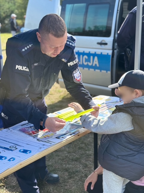 Każde dziecko mogło obejrzeć policyjny radiowóz, usiąść za kierownicą i poczuć się jak prawdziwy funkcjonariusz. Dodatkowo na najmłodszych czekały kolorowanki, w których przewodnim motywem była tematyka bezpieczeństwa. Mundurowi rozdawali także elementy odblaskowe, przypominając, że ich noszenie po zmroku zwiększa widoczność i może uratować życie.