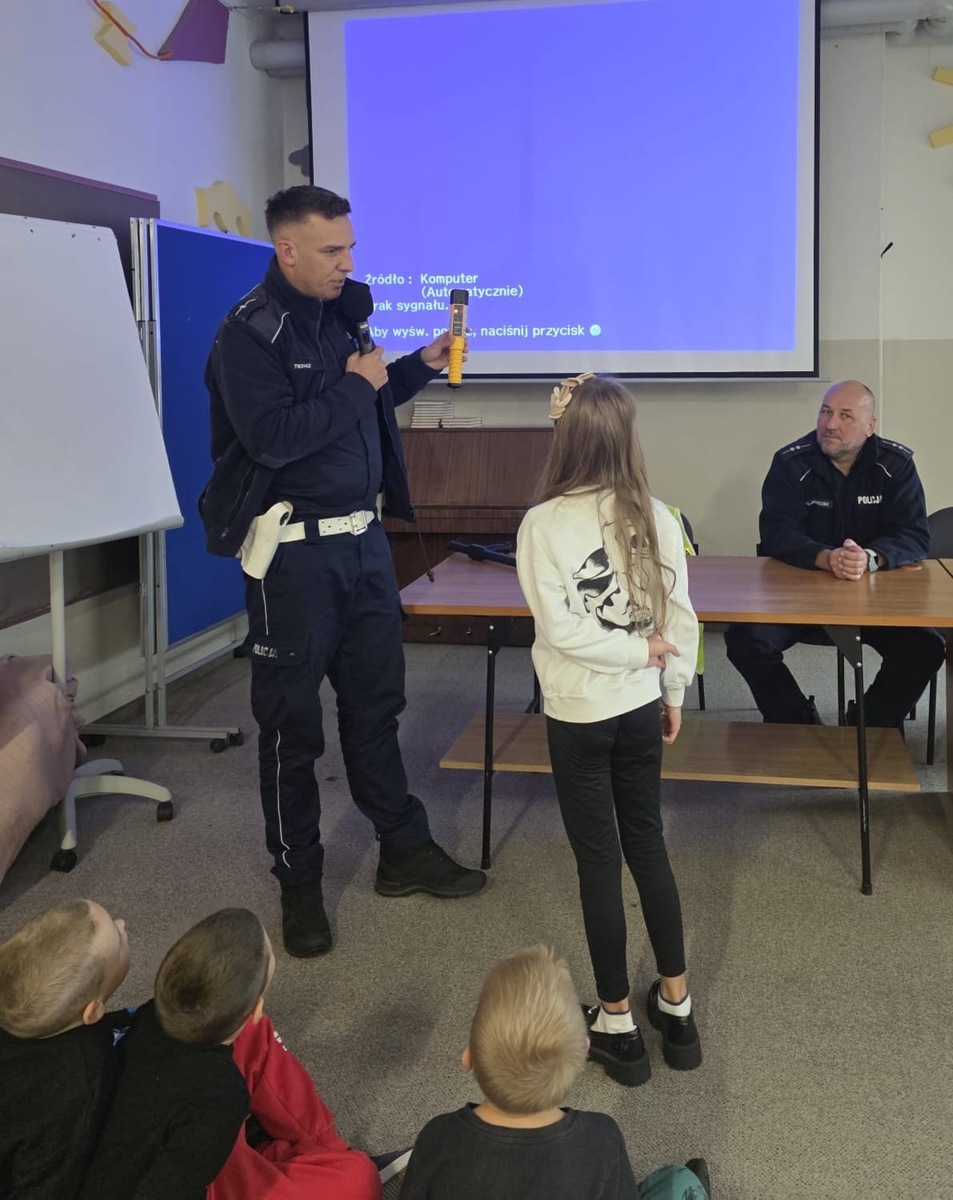 Policjanci omówili też podstawowe zasady bezpieczeństwa w domu i w drodze do szkoły, przypominając, że odpowiedzialne zachowanie chroni przed wieloma zagrożeniami.