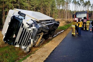 Wczoraj, około godziny 9:00, na remontowanym odcinku drogi S19 w rejonie miejscowości Annówka, kierujący samochodem ciężarowym marki Scania nie dostosował prędkości do panujących warunków drogowych, zjechał na nieutwardzone pobocze i wywrócił pojazd.