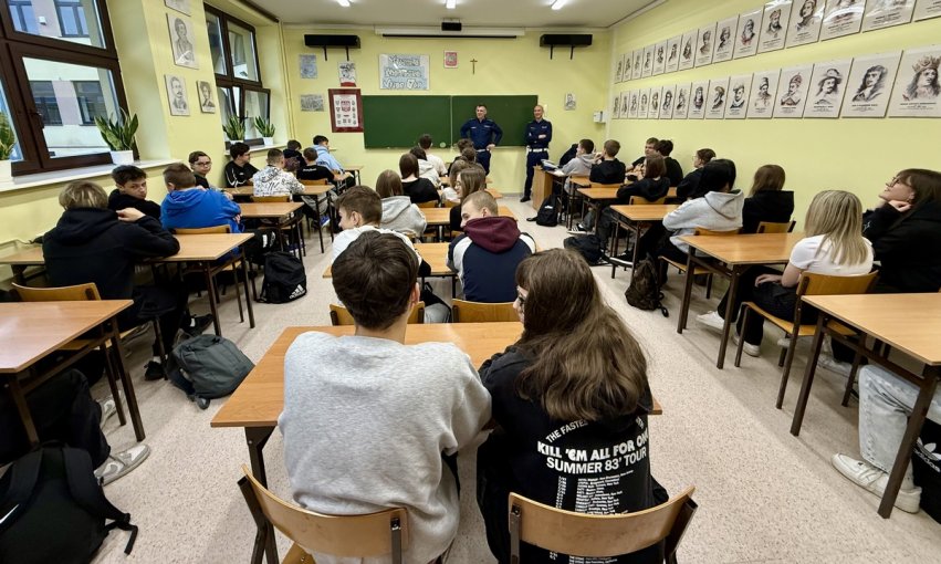 Młodzież aktywnie uczestniczyła w spotkaniu, chętnie zadawała pytania i dzieliła się swoimi spostrzeżeniami. Było to już kolejne spotkanie profilaktyczne w tej szkole i z pewnością nie ostatnia .