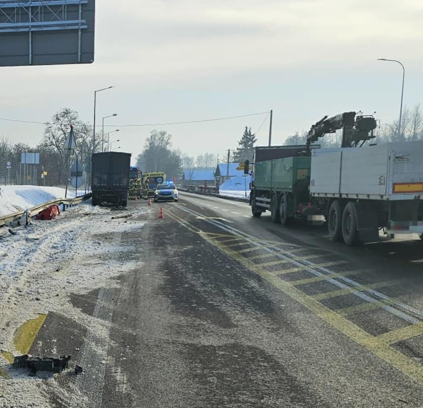 Zdarzenie miało miejsce wczoraj przed godziną 12:00 na drodze S19 w miejscowości Wólka Rozwadowska. Jak ustalili policjanci, 48-letni kierujący ciągnikiem siodłowym marki Renault z naczepą nie dostosował prędkości do warunków panujących na drodze, co doprowadziło do uszkodzenia barierek ochronnych oraz tymczasowego oznakowania drogowego. Funkcjonariusze zatrzymali dowód rejestracyjny pojazdu i sporządzili wymaganą dokumentację. Mężczyzna został ukarany mandatem karnym. Badanie alkomatem wykazało, że był trzeźwy.