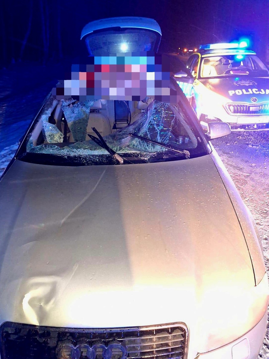 Wczoraj około godziny 18:00 na drodze krajowej numer 19, w rejonie miejscowości Czerwonka-Gozdów, doszło do zdarzenia drogowego z udziałem dzikiego zwierzęcia. Jak wynika z relacji kierowcy, na jezdnię niespodziewanie wbiegł łoś, uderzając w nadjeżdżające audi. W wyniku uderzenia doszło do wybicia przedniej szyby oraz uszkodzenia dachu i maski samochodu. Kierowca podróżował sam, był trzeźwy i na szczęście nie doznał poważnych obrażeń ciała. Łoś nie porzeżył zderzenia.