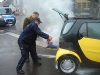 Zdecydowana reakcja policjantów prawdopodobnie zapobiegła przed całkowitym spaleniem samochodu osobowego. Niewielki pojazd zapalił się podczas jazdy na ulicy Cichej w Lubartowie. Na szczęście jego kierowcy nic się nie stało.