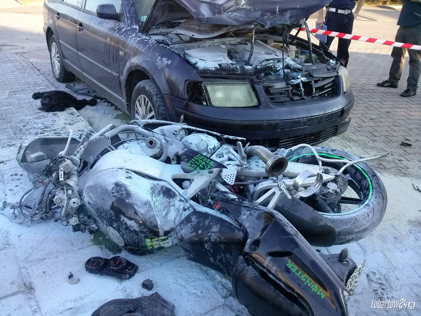 Do wypadku doszło tuż przed godziną 18.00 na ulicy Lubelskiej w Lubartowie. Jadący motocyklem honda 24 – latek postanowił, że będzie jechał tylko na tylnym kole. Jak się po chwili okazało, decyzja ta była dla niego zgubna. Po przejechaniu niewielkiego odcinka stracił panowanie nad pojazdem, wpadł na chodnik i uderzył w znak drogowy. Następnie, rozpędzona maszyna uderzyła jeszcze w zaparkowanego volkswagena.