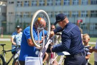 Dzisiaj w Zespole Szkół w Kamionce odbył się festyn z okazji Dnia Dziecka. W spotkaniu wzięli udział także policjanci. Funkcjonariusze rozdawali odblaski oraz prezentowali umundurowanie i sprzęt wykorzystywany podczas codziennej służby. Sporym zainteresowaniem cieszyła się również akcja znakowania rowerów. Na spotkaniu nie zabrakło także policyjnej maskotki, z którą można było zrobić sobie pamiątkowe zdjęcia.