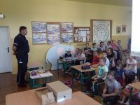 To już kolejne spotkanie policjantów z dziećmi w ciągu kilku ostatnich dni. Dzielnicowi chętnie odwiedzają szkoły aby porozmawiać z uczniami o bezpieczeństwie. Jest to też doskonała okazja aby przestrzec młodych ludzi przed zagrożeniami jakie mogą ich spotkać oraz nauczenie jak ich unikać i jak postępować w przypadku ich zaistnienia.