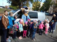 Miłym zaskoczeniem było również spotkanie z sierż. Lampartem. Policyjna maskotka przekazała dzieciom porady dotyczące zasad bezpieczeństwa m.in. w ruchu drogowym czy też w kontaktach z nieznajomym.