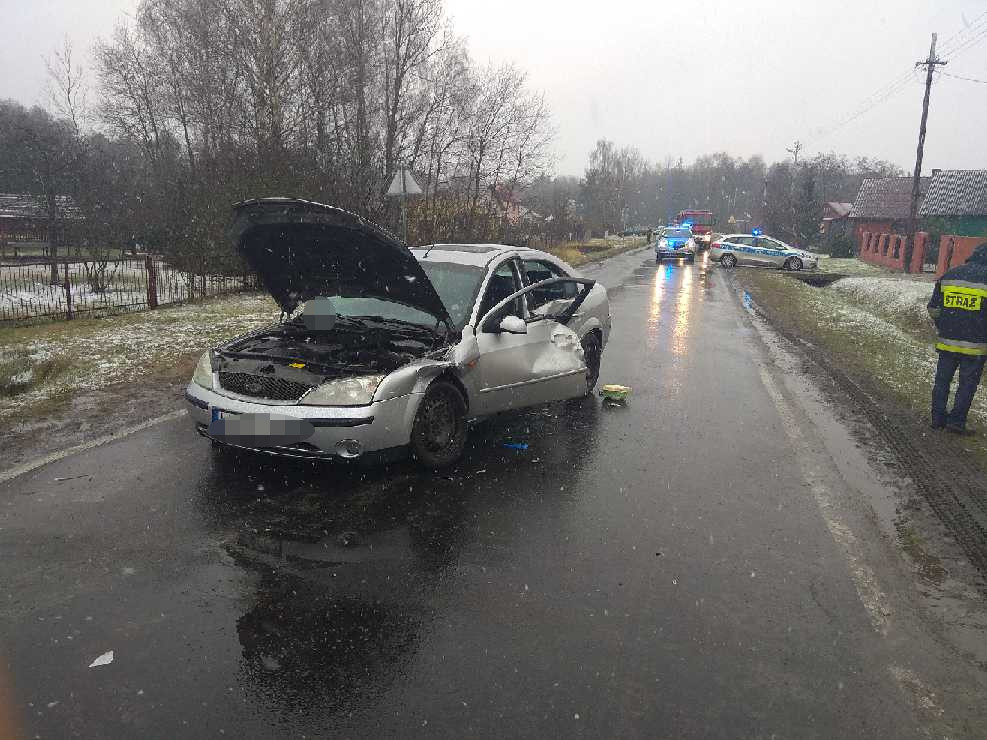 Policjanci wyjaśniają okoliczności zdarzenia drogowego do którego doszło dzisiaj w miejscowości Jamy. Na kierującego fordem, wykonującego manewr skrętu w lewo najechał pojazd ciężarowy marki DAF. Do szpitala z obrażeniami został przetransportowany 60-letni kierujący osobówką.