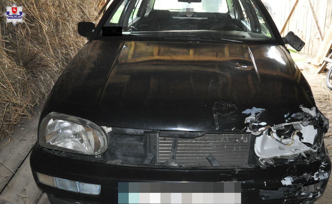 Policjanci ustalili markę samochodu biorącego udział w wypadku. Okazało się, że był to vw golf. Kilka godzin później na jednej z posesji w pow. lubartowskim kryminalni odnaleźli ukryty w stodole pojazd. Auto posiadało liczne uszkodzenia, m.in. zderzaka i świateł.