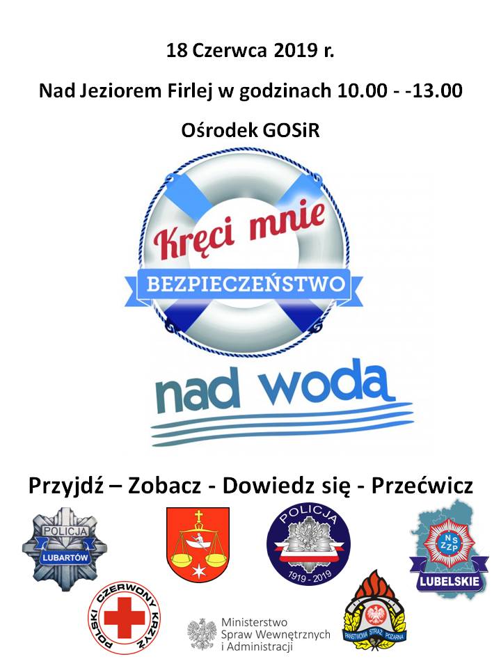 Ładna pogoda oraz ciepłe dni zachęcają do spędzania wolnego czasu na powietrzu, jak również do rekreacji w wodzie i nad wodą. W takim okresie dochodzi niestety do większej liczby utonięć. By zapobiegać tego typu wypadkom rozpoczęła się trzecia ogólnopolska edycja akcji informacyjno - edukacyjnej pod nazwą „Kręci mnie bezpieczeństwo nad wodą”. Przyłączyli się do niej także policjanci z KPP w Lubartowie. Już 18 czerwca w nad jeziorem w Firleju będzie miał miejsce happening promujący bezpieczne zachowania "nad wodą".