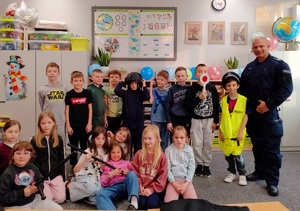 Jak bezpiecznie spędzić ferie zimowe i unikać zagrożeń podczas zimowych zabaw – o tym rozmawiali uczniowie klas III i IV Zespołu Szkolno-Przedszkolnego w Woli Skromowskiej podczas spotkania z policjantem w ramach akcji „Bezpieczne Ferie”. Na zakończenie spotkania uczniowie otrzymali od dzielnicowego odblaski, aby pamiętali o bezpieczeństwie.