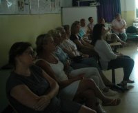 Dzisiaj w Szkole Podstawowej w Nowodworze odbyło się szkolenie, podczas którego grono pedagogiczne oraz pracownicy szkoły dowiedzieli się jak zachować się w sytuacji wtargnięcia uzbrojonego napastnika na teren placówki. Szkolenie przeprowadził Komendant Powiatowy Policji w Lubartowie modszy inspektor Andrzej Antoniewski.