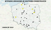 Mapa wypadków drogowych ze skutkiem śmiertelnym – WAKACJE 2019